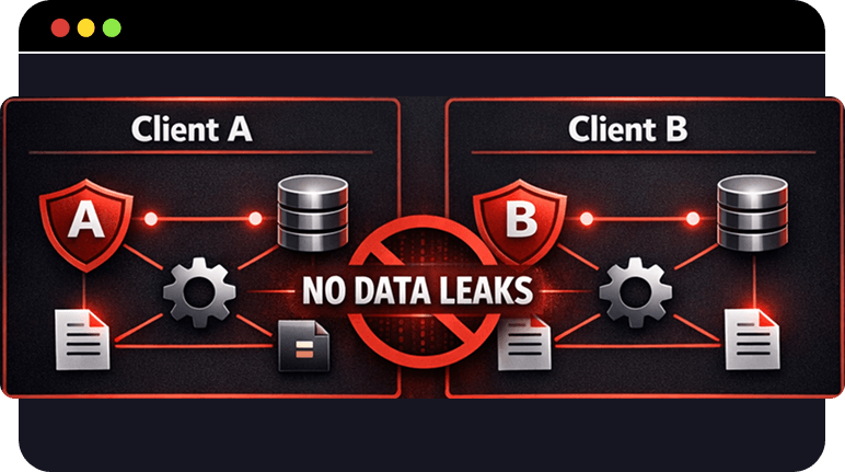 Each client’s data, configurations, and outputs are completely separated. Client A never sees Client B’s information. You never worry about data leaks between accounts. Professional-grade security that clients expect from a real agency. This is the same isolation architecture that enterprise SaaS platforms charge thousands per year for.
