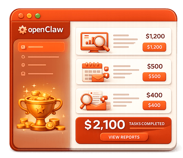 One competitor analysis report (2 hours of OpenClaw work, 30 minutes of cleanup, billed $1,200). One 4-week social media calendar for a local gym (billed $500). One lead gen list of 50 businesses with audit reports (billed $400). Total revenue from 3 tasks: $2,100. Total time giving OpenClaw instructions: maybe 20 minutes.