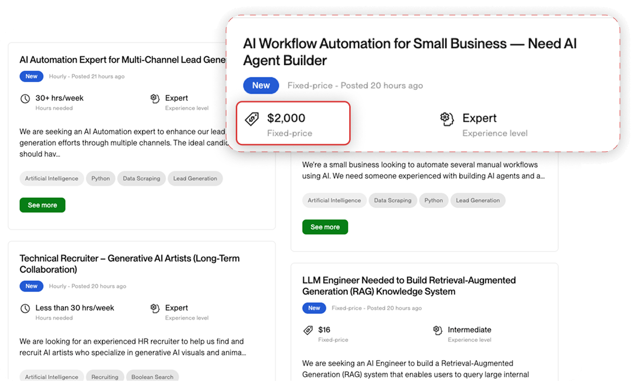 There aren't enough people who can set up and configure AI agent systems. Demand is through the roof. Rates reflect it.