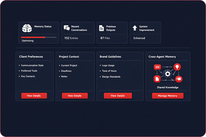 Your OpenClaw remembers everything: past conversations, client details, brand guidelines, task history. Gets smarter the more you use it. No starting from scratch every session.